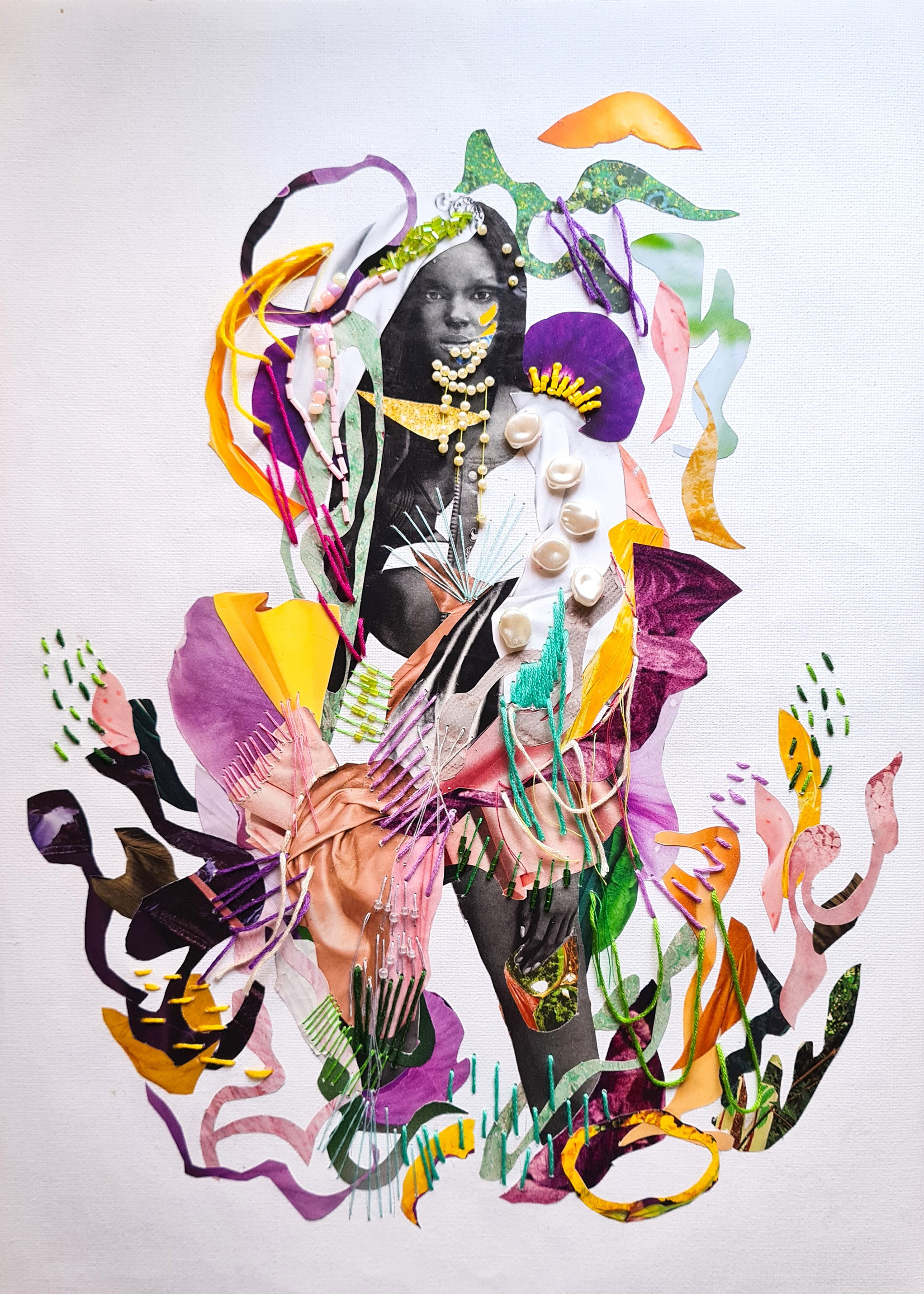 A visual interpretation of a poem written by Ica Ramos that explores embroidery and collage.
